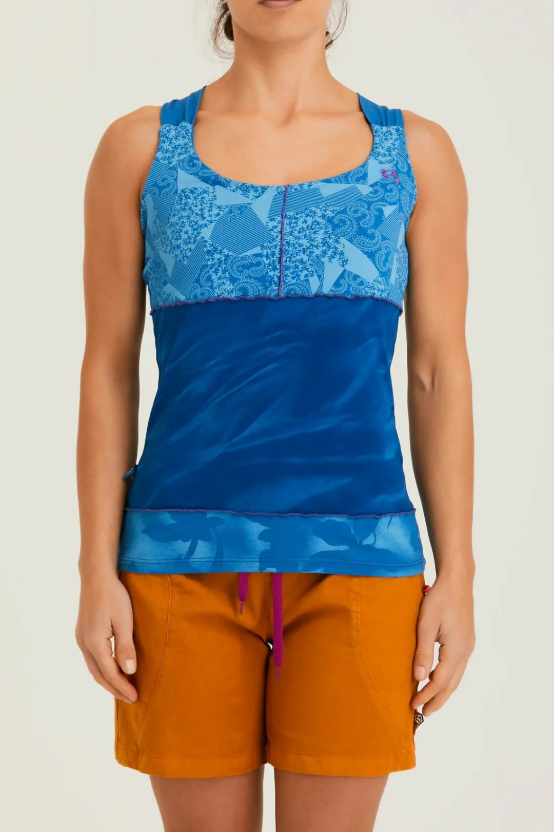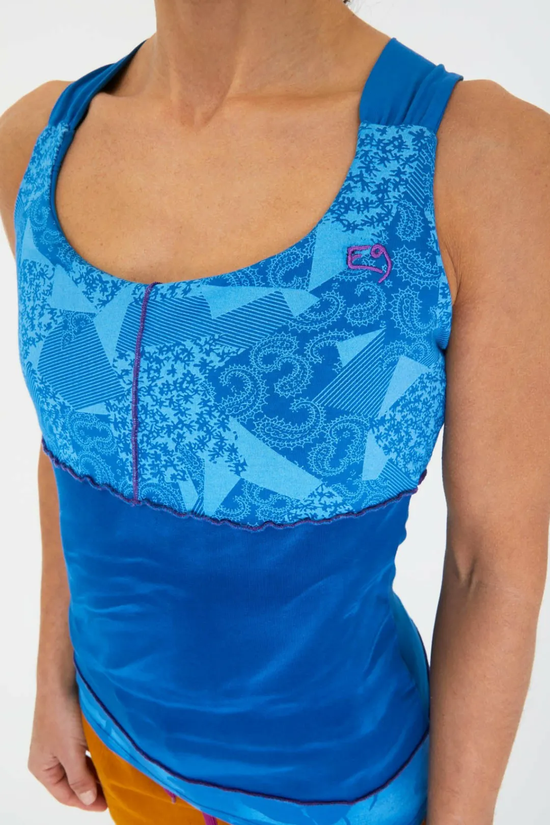 Tank Top Integrated Bra Made Of Three Different Bielastic Printed Fabrics. Embroidery On The Front. Modern Cut. Maximum Comfort And Mobility. Made In Italy.