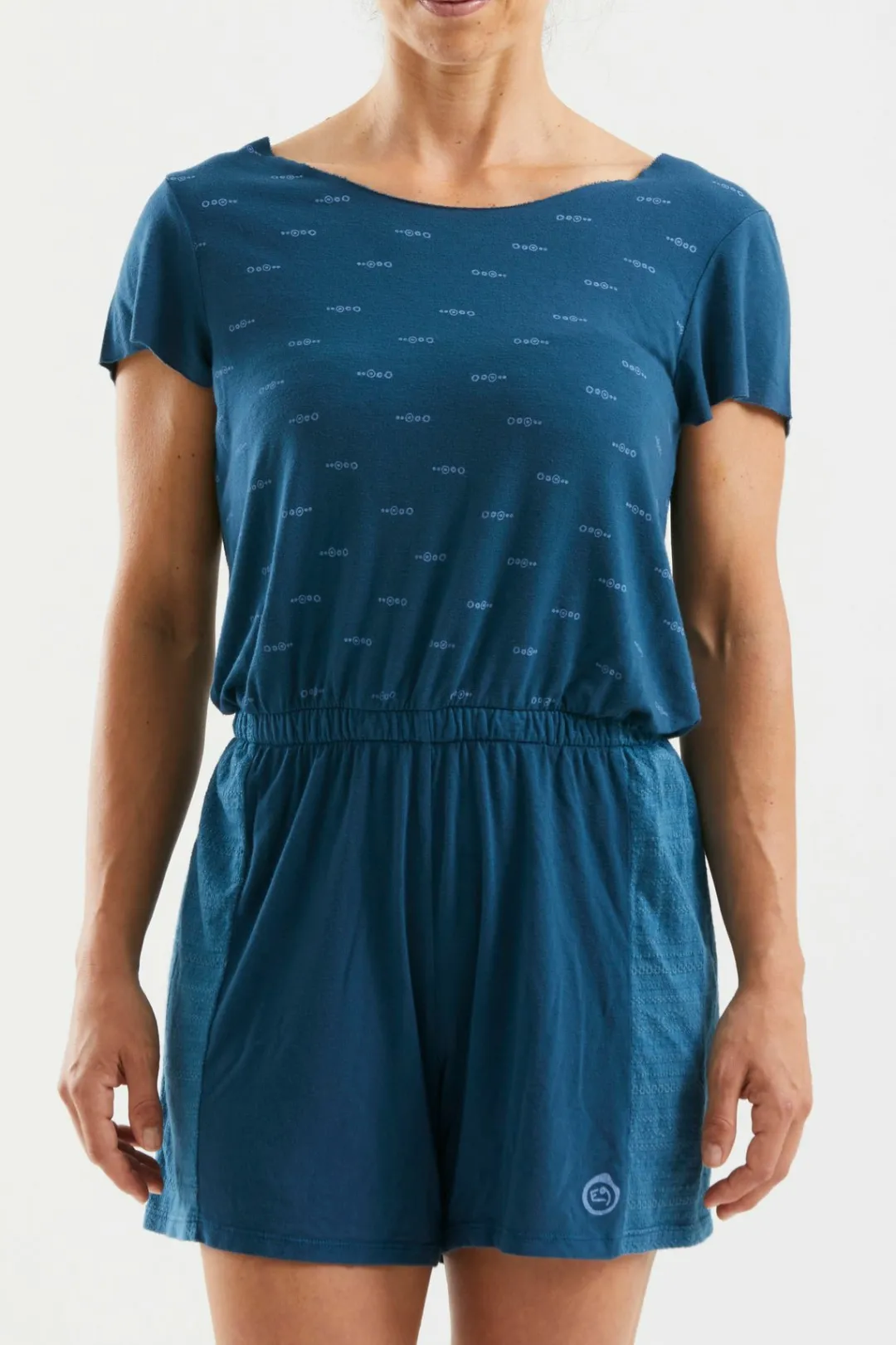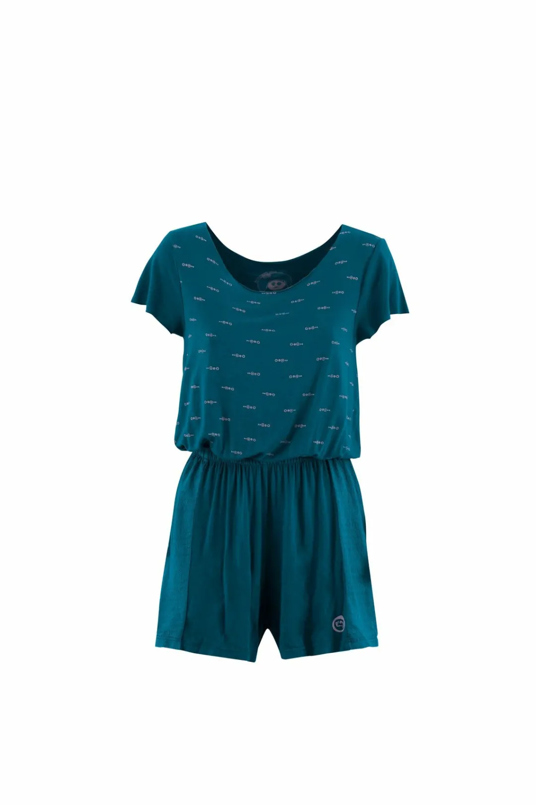Jumpsuit Shorts Dress In Bamboo Jersey And Jersey Jacquard. Outdoor And Climbing Concept Line. Print On The Front. Good Comfort. Regular Fit. Made In Italy.